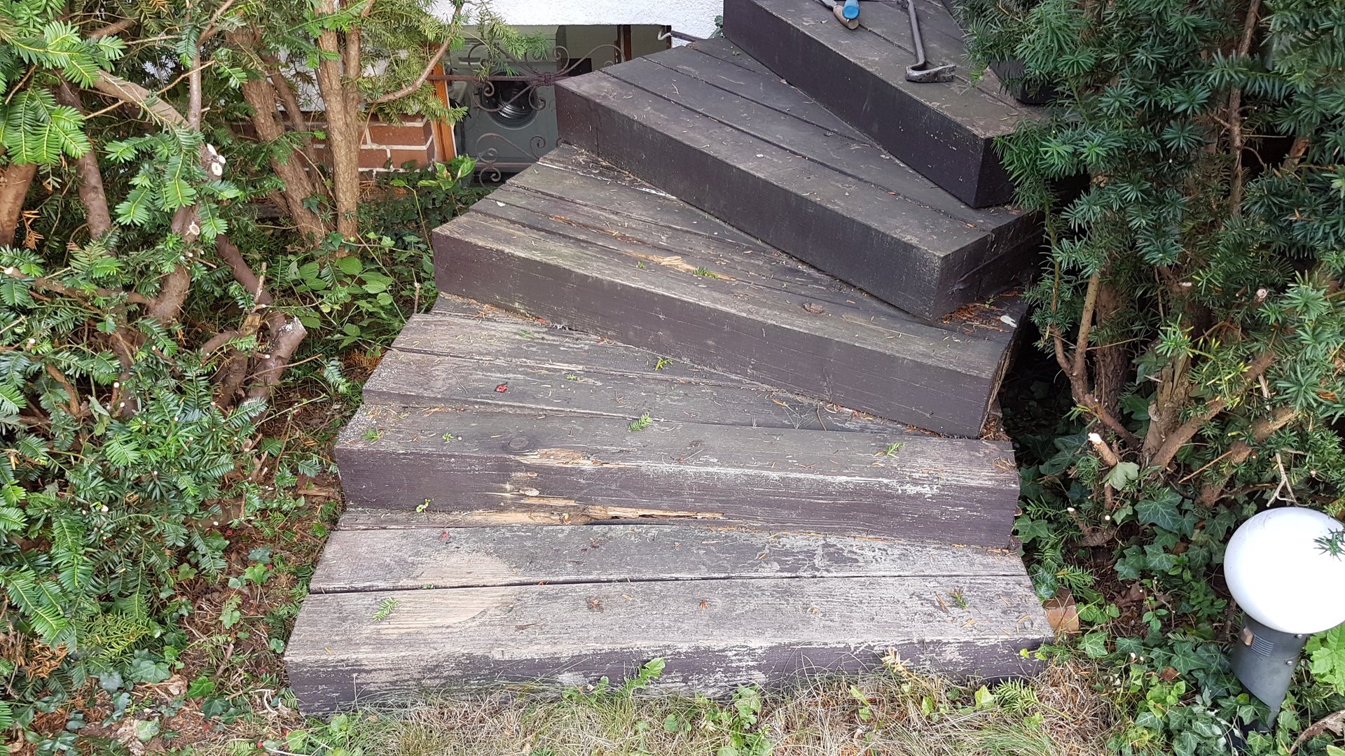 Ausbau, Anpassen und Einpassen neuer Hölzer in passender Stärke. Schleifen, Grundieren und Streichen der Holzflächen mit wetterbeständigem Anstrichsystem.